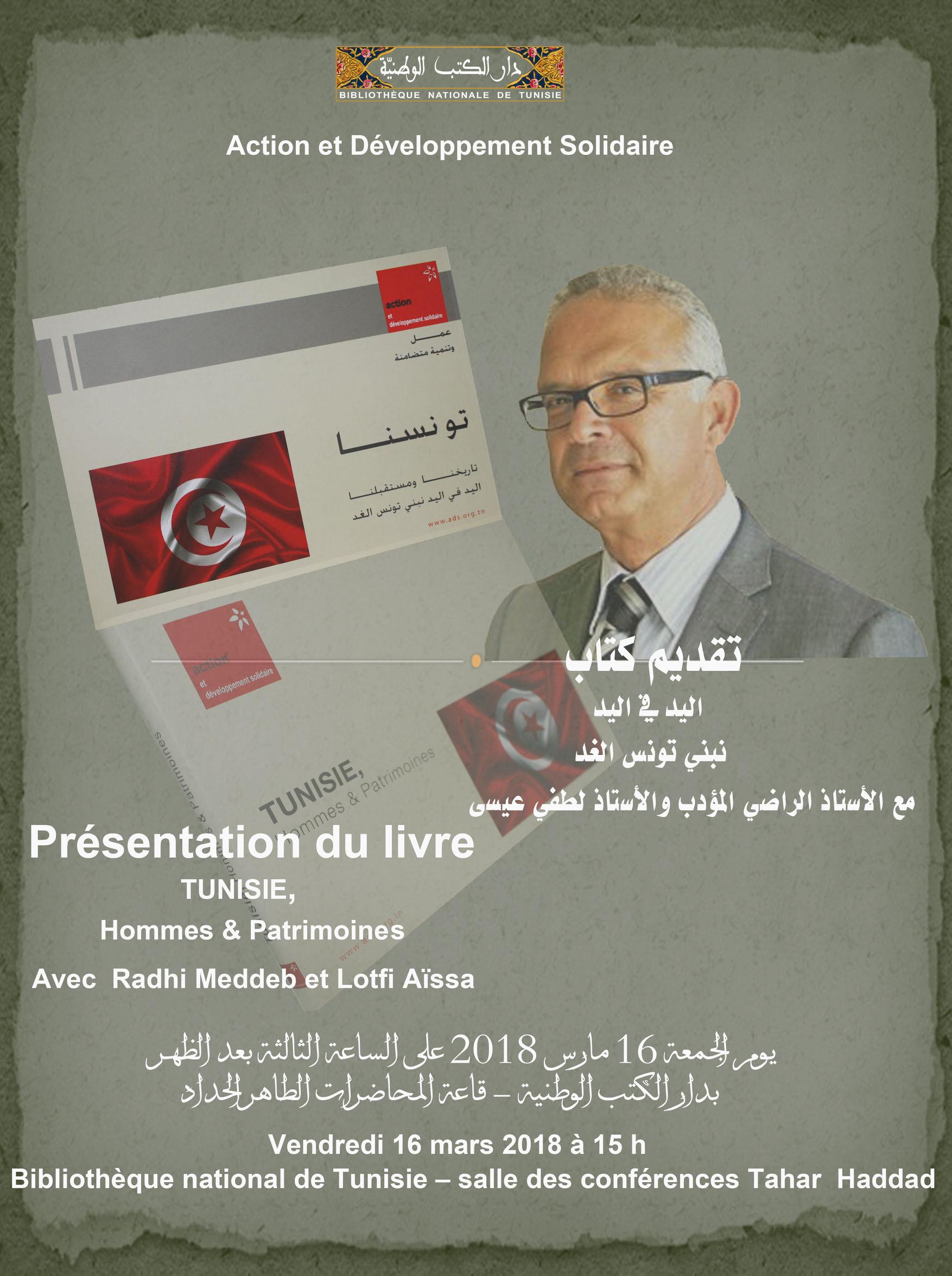 « Tunisie: Hommes et Patrimoines » sera présenté par Radhi Meddeb, président fondateur de l’association Action et Développement solidaire. Le professeur Lotfi Aissa sera son discutant, lors de la présentation du livre vendredi 16 mars à 15h, à la Bibliothèque Nationale.