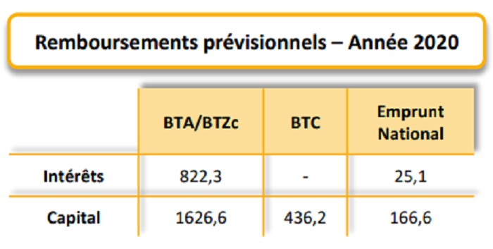 La première est les montants prévus des remboursements qui s’élèvent à 3,076 milliards de dinars.