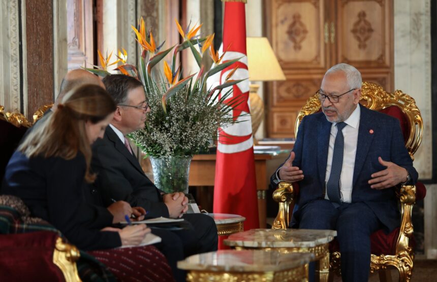 Le président de l’Assemblée des représentants du peuple (ARP) Rached Ghannouchi, recevait mercredi, au Palais du Bardo, l’ambassadeur des États-Unis d’Amérique à Tunis, Donald Blome.