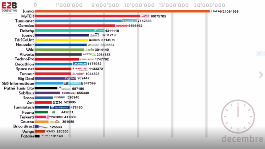 E2B Consulting a publié le Top 20 de sites e-commerce les plus visités en Tunisie pendant 2019. D’après le Cabinet de Consulting, le commerce en ligne est un secteur qui deviendra plus prospère après la crise du Coronavirus.