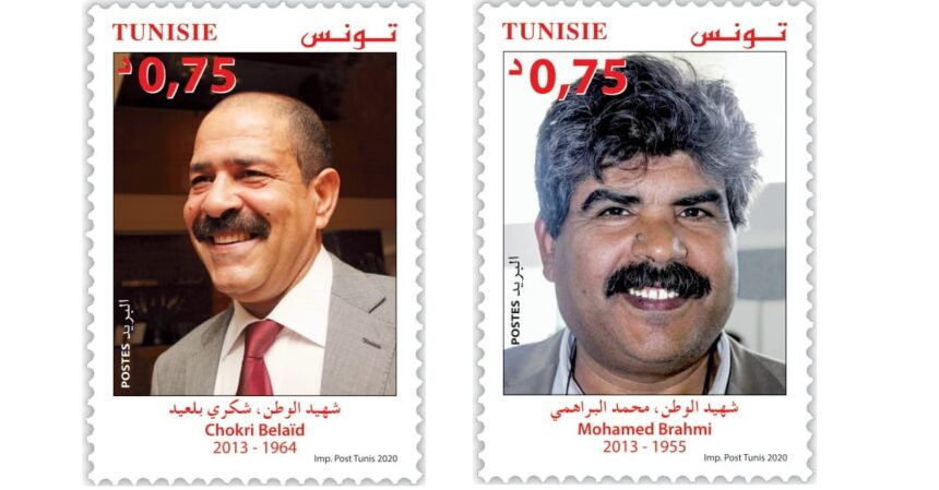 La Poste Tunisienne émettra, le 09 avril 2020, deux timbres-poste. Et ce pour rendre hommage aux martyrs de la patrie et de la République, Chokri Belaïd et Mohamed Brahmi.