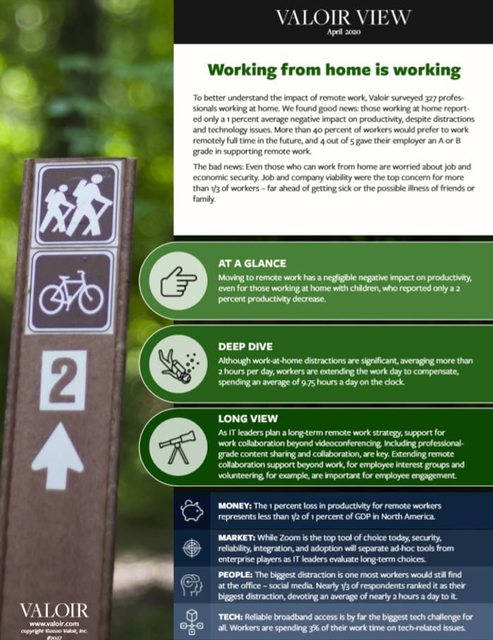 Un rapport de la firme Valoir a révélé que le passage au télétravail à la suite de la pandémie de Covid-19 n’a eu pour effet qu’une réduction de 1% sur la productivité du travail.