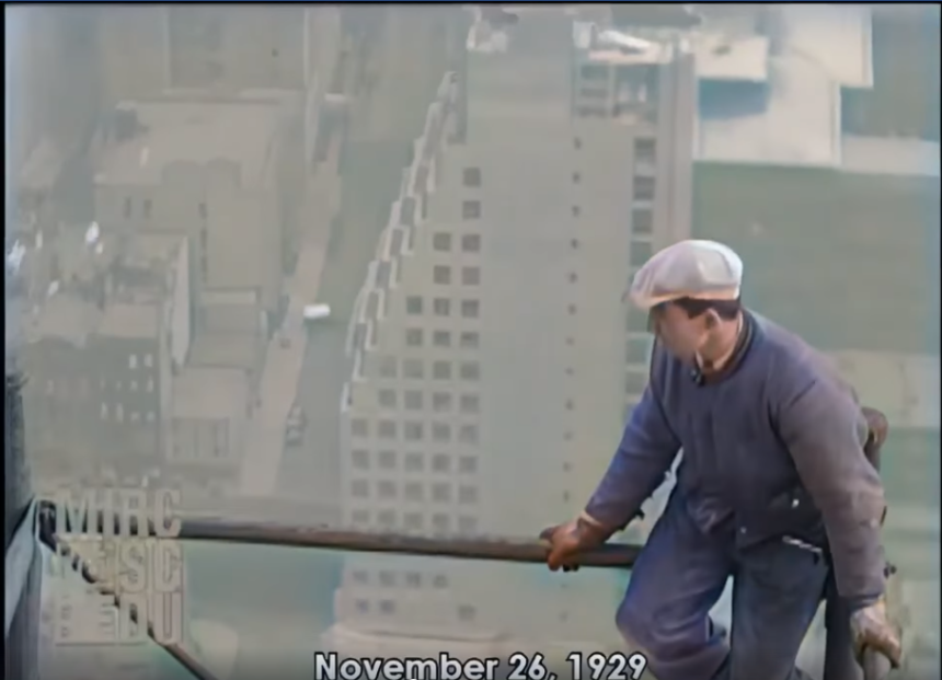 Ces images colorisées datent de 1929. Plus précisément du 26 novembre 1929. Elles ont été prises sur le Chrysler Building à New York.