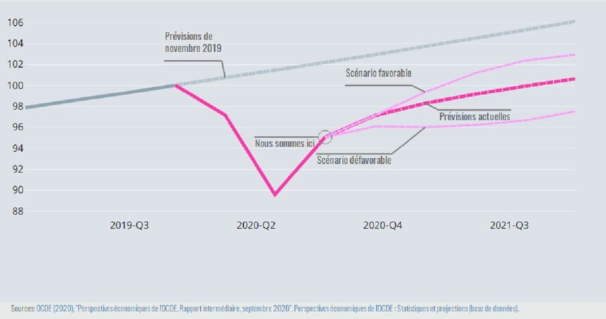 En effet, selon l’OCDE, ces prévisions sont moins négatives que celles qui figuraient dans les Perspectives économiques publiées en juin par l’OCDE. Et ce, essentiellement grâce aux résultats meilleurs que prévu enregistrés en Chine et aux États-Unis au premier semestre de cette année. Ainsi qu’aux réponses apportées massivement par les pouvoirs publics.