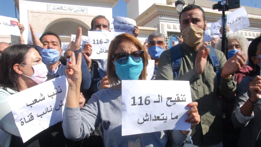 De même, à l’appel du Syndicat des journalistes (SNJT) et la Fédération générale de l’information, des journalistes se sont rassemblés, hier mardi, devant le bâtiment annexe du Parlement. Et ce, afin de dénoncer le projet d’amendement du décret-loi n°116 relatif à l’audiovisuel.