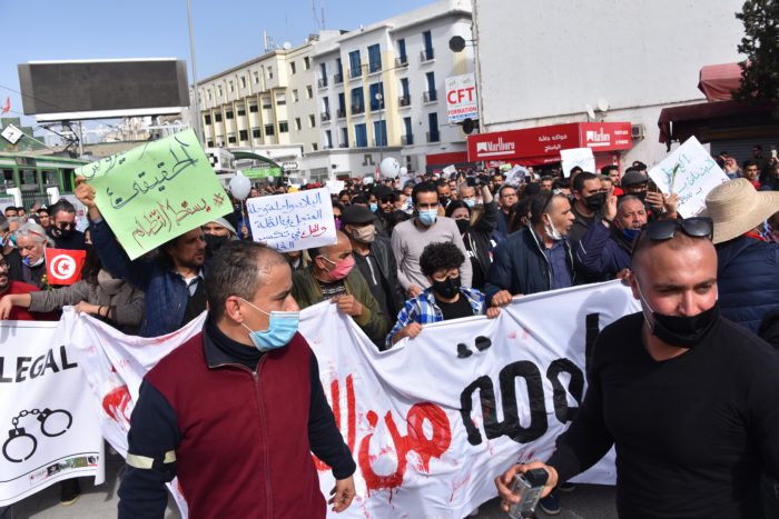 De ce fait, des milliers de manifestants ont pris le départ depuis la place des droits de l’Homme, au milieu d’un dispositif sécuritaire massif. Plusieurs barrages policiers ont bloqué l’accès à l’Avenue Habib Bourguiba déjà mis en place.