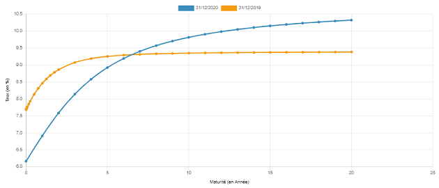 Les taux d’intérêt prennent aussi en considération les taux sans risque. Donc ceux auxquels l’Etat emprunte de l’argent sur le marché local. En regardant la courbe des taux, les taux à court et moyen termes ont baissé en 2020 et à partir de la maturité à 7 ans, la tendance s’inverse. Pour la dette sur dix ans, 46 points de base supplémentaires ont été perçus. Si on prête à l’Etat à des taux plus chers, comment espérer voir une baisse pour les crédits accordés aux entreprises?