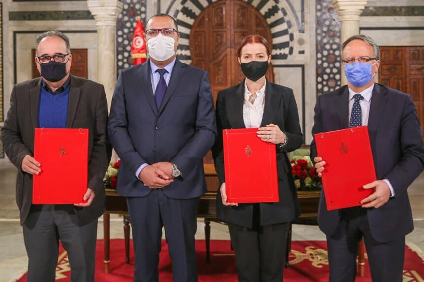 Sous les auspices du chef du gouvernement, Hichem Mechichi, le Ministre des Affaires sociales, Mohamed Trabelsi, la Ministre de la Jeunesse, des sports et de l’Intégration professionnelle, Sihem Ayadi et le PDG de la CNSS, Imed Triki ont conclu un accord portant sur la dette des associations sportives auprès de la CNSS.