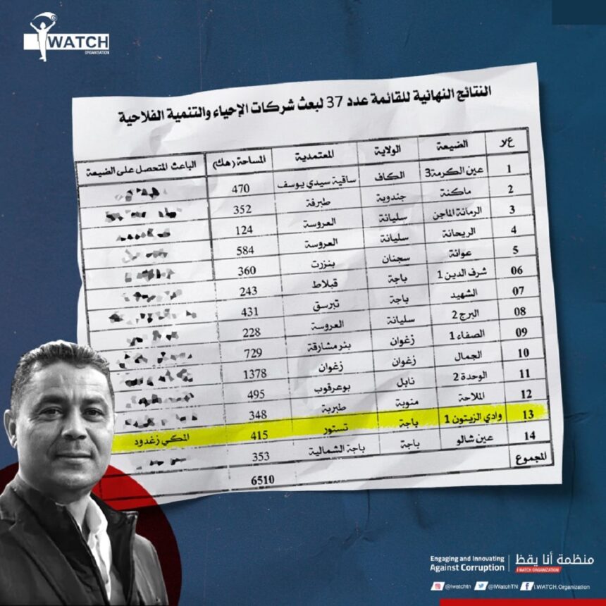 L’organisation I Watch a dénoncé, vendredi, l’attribution par voie de location d’une ferme domaniale de 415 hectares à Oued Zitoune (Gouvernorat de Béjà) au député indépendant de l’ARP, Makki Zaghdoud. Cette attribution fait suite à sa participation à l’appel d’offres relatif à la 37ème liste des fermes domaniales à ériger en sociétés de mise en valeur et de développement agricole (SMVDA), ouvert en août 2020.