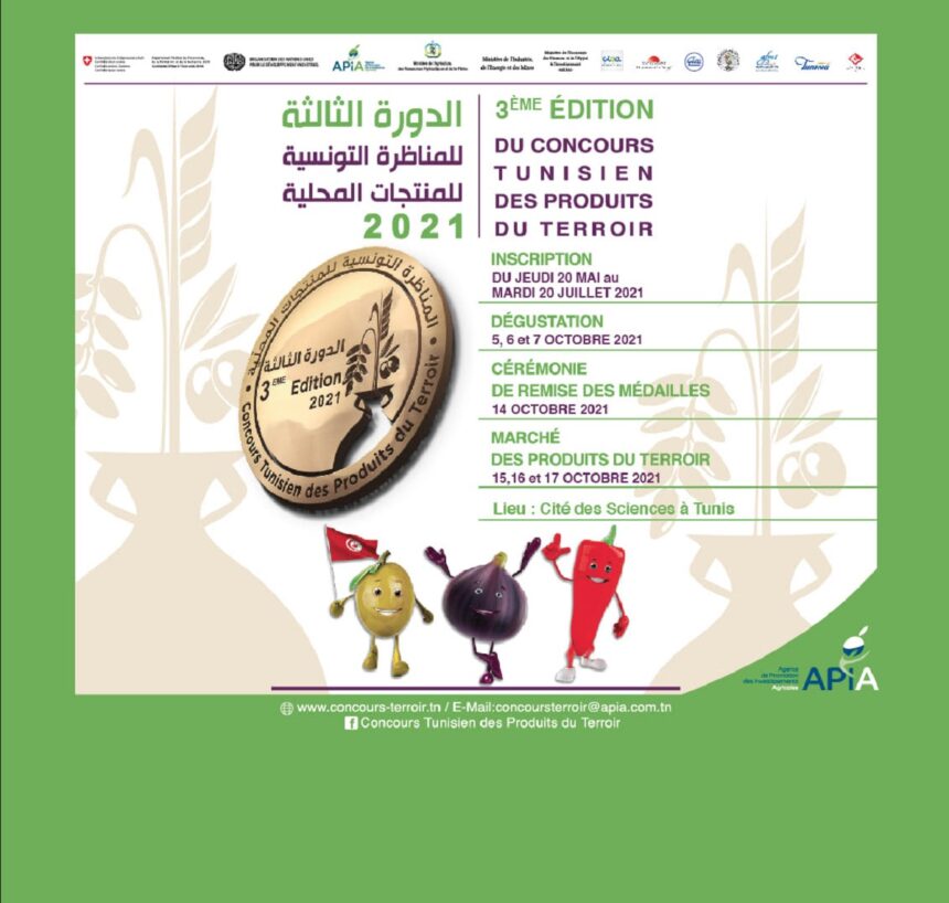 L’Agence de Promotion des Investissements Agricoles (APIA), prépare la troisième édition du concours tunisien des produits du terroir. Les séances de dégustation auront lieu du 5 au 7octobre 2021. Tandis que la cérémonie de remise des médailles se tiendra le 14 octobre. Pour ce qui est du marché des produits du terroir, il est prévu du 15 au 17 octobre 2021. La Cité des sciences accueillera l’événement.