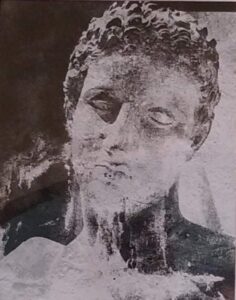 A Tuscania, en pays étrusque, entre la poussière des nécropoles et les sarcophages des musées aux visages d’ange ou de démon. Marianne Catzaras sème de l’ombre dans la lumière avec ces visages d’époques et de pays divers. Tel est le travail de tout artiste qui veut lever le voile, transfigurer le réel afin de lui donner une forme, un visage à l’exil.