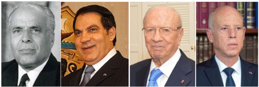 Arrêtons-nous sur l’aïeul de cette belle lignée présidentielle: Habib Bourguiba. S’il ne représente presque plus rien aujourd’hui dans la mémoire collective, il demeure pourtant le Père de l’indépendance, bâtisseur de la Tunisie moderne et le « Combattant suprême » qui avait mené avec pugnacité et force de conviction la « Grande bataille » contre le sous-développement économique, social et culturel. Il fut aussi le promulgateur du Code du Statut Personnel, induisant une modification radicale du statut de la femme tunisienne. Bien que chef d’Etat d’un petit pays coincé entre l’instable Libye et la puissante Algérie, il n’eût de cesse de lutter pour sauvegarder une exception tunisienne incarnée par un pays tolérant et tendu vers la modernité. Ce qui, à l’époque, constituait un défi pour des pays arabe empêtrés dans leurs rivalités pan-arabistes et islamistes.