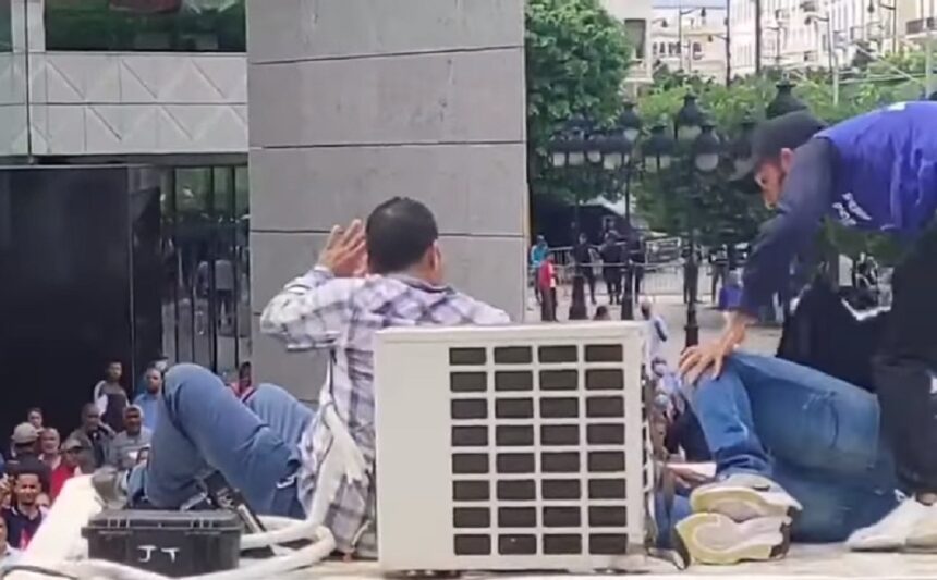 Le SNJT a fait savoir que des manifestants, avec des bouteilles d’eau et des pierres, ont ciblé l’équipe de la Télévision tunisienne. Celle-ci s’est installée sur le toit d’un petit commerce pour couvrir la manifestation. Des manifestants ont levé le slogan « dégage » devant les équipes de la Télévision nationale.