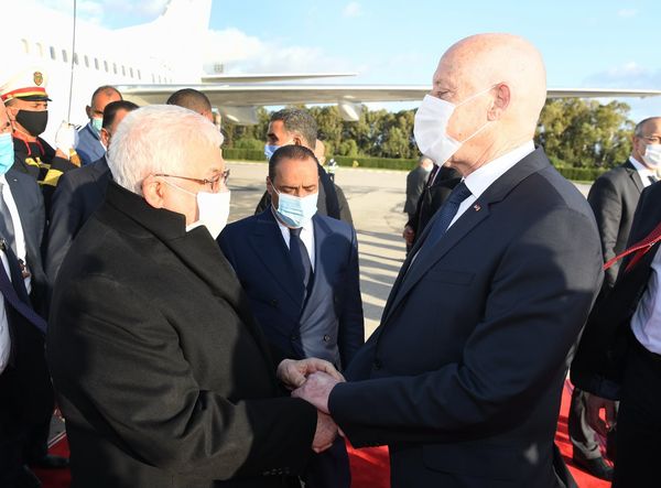 Kaïs Saïed le chef de l’Etat et le président palestinien ont salué le drapeau au son des hymnes nationaux des deux pays et ont passé en revue un détachement des trois armées qui leur ont rendu les honneurs, selon un communiqué de la présidence.