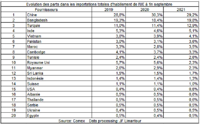 « Le classement des principaux fournisseurs d’habillement de l’Union européenne subit peu de variations d’une année à l’autre »