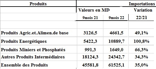 Selon l’INS, l’augmentation observée au niveau des exportations (+25,8%), à septembre 2022, concerne plusieurs secteurs. En effet, les exportations énergétiques ont augmenté de 84%. Celles des mines, phosphates et dérivés de 72,1%. Les exportations des industries agro-alimentaires sont en hausse de 32,1%. Alors que celles des textiles, habillement et cuirs augmentent de 21,9%; et celles des industries mécaniques et électriques de 13,5%.
