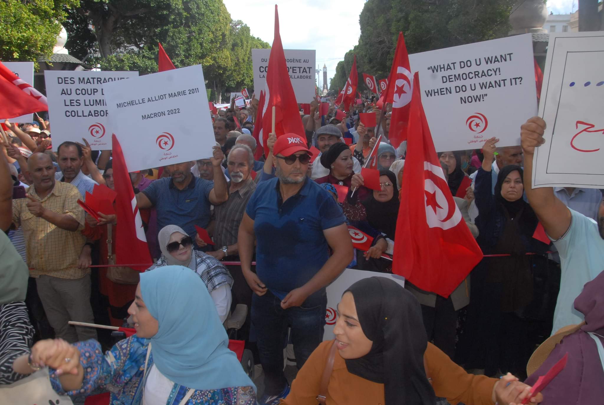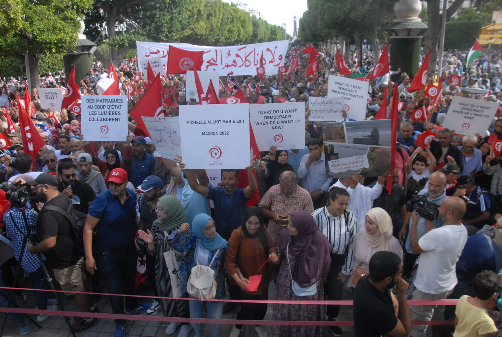 Le Front du Salut national a organisé une manifestation en ce samedi 15 octobre contre Kaïs Saïed appelant à le destituer.