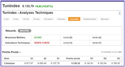 Soulignons que la synthèse pour le TUNINDEX, clôture la séance par un signal «NEUTRE» en données journalières.