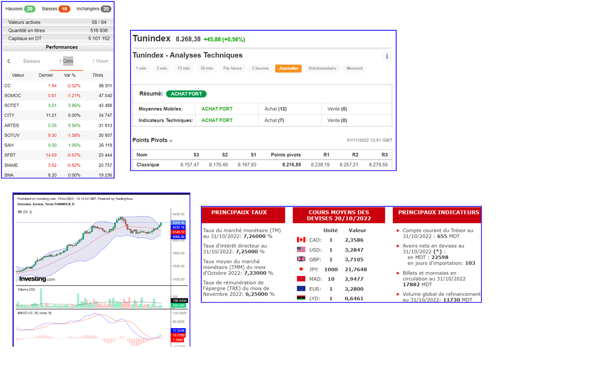 Enfin, soulignons que le résumé technique et le consensus pour le Tunindex affichent un signal : « ACHAT FORT » en données journalières.