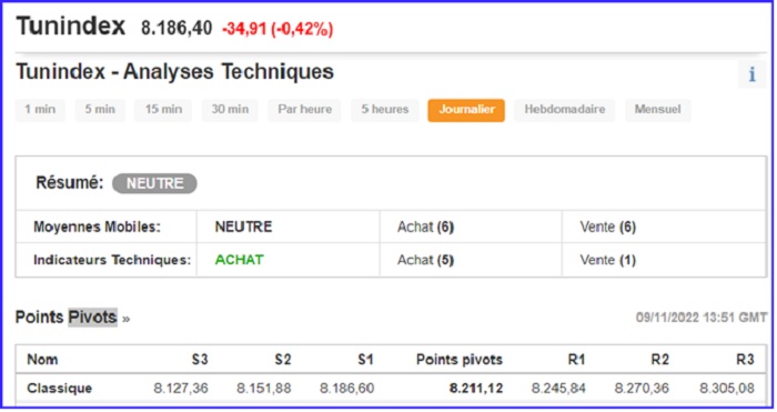 Enfin, soulignons que le résumé technique et le CONSENSUS pour le TUNINDEX affichent un signal « NEUTRE » en données journalières.