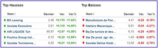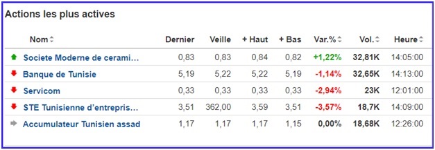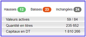 - Sur 59 valeurs actives, 12 sont à la hausse, contre 23 à la baisse et 24 inchangées.