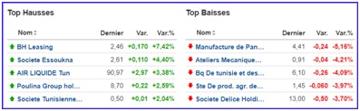 - Sur 59 valeurs actives, 12 sont à la hausse, contre 23 à la baisse et 24 inchangées.