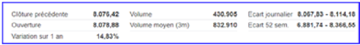 Le seuil (8130 pts), joue le rôle de résistance très significative avec une fiabilité forte au milieu de la semaine en cours.