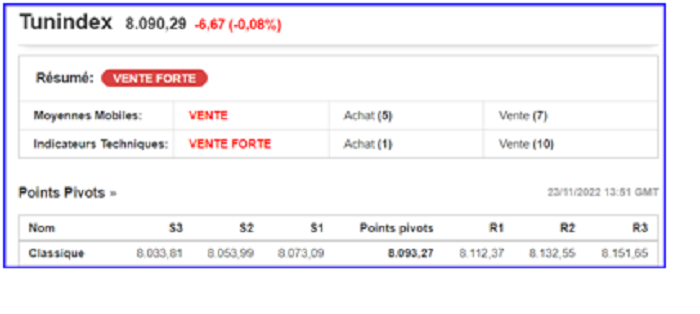Enfin, soulignons que le CONSENSUSpour le TUNINDEX, affiche un signal « VENTE FORTE » en données journalières.
