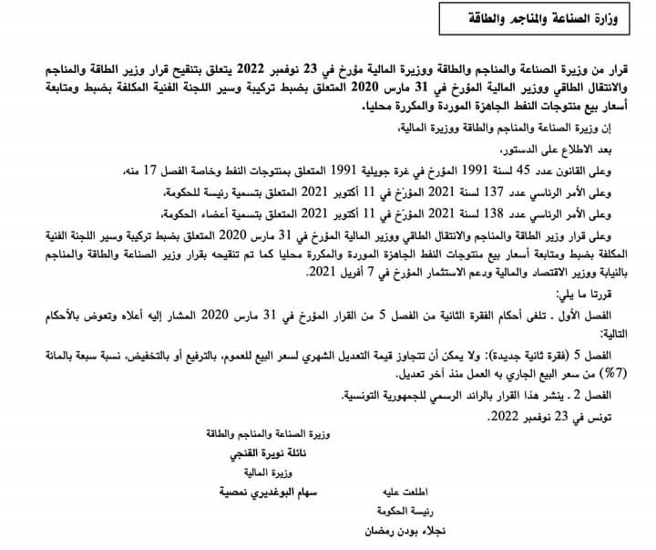 Le décret acte le taux de réajustement des prix de vente du carburant, qui passe de 5 % à 7%.