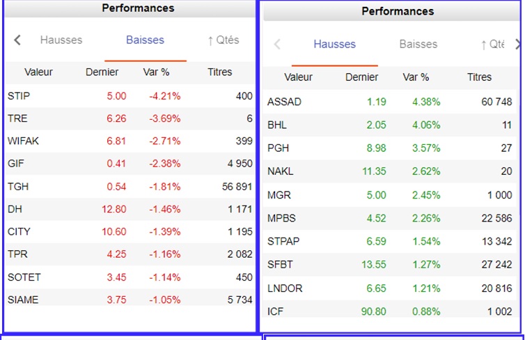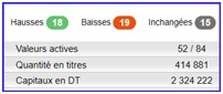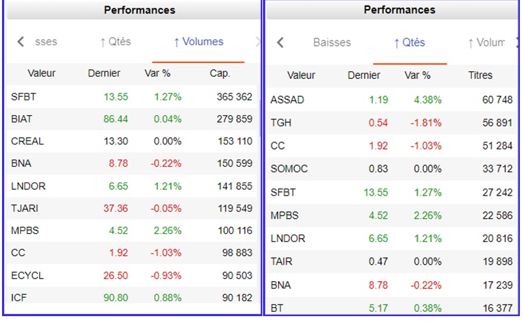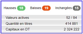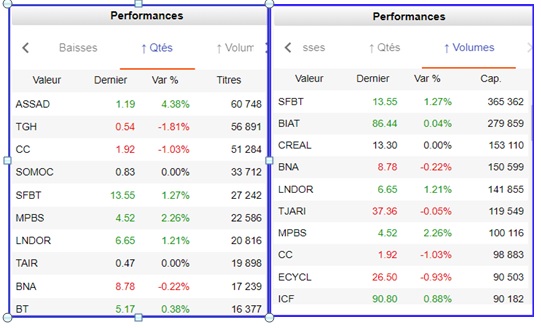 Sur 10 valeurs quantitativement actives, 5 sont à la hausse, contre 3 à la baisse et 2 inchangées.