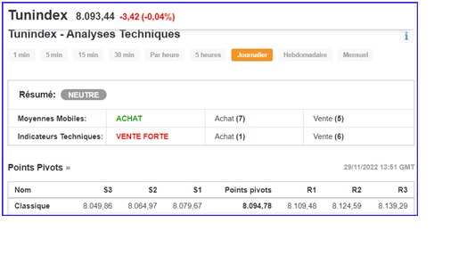 Pour le point pivot du jour, de 8094,78pts, le TUNINDEX se positionne dans un canal très étroit, limité par :