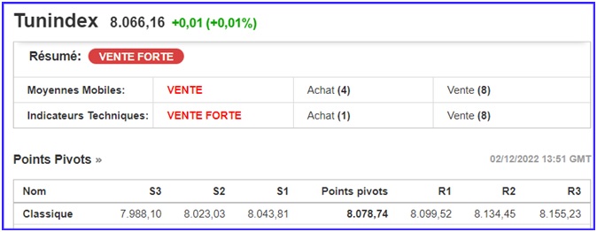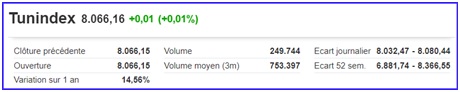 Le Tunindex 8.066,16 pts clôture la séance du vendredi 2 décembre 2022 à l’équilibre (+).