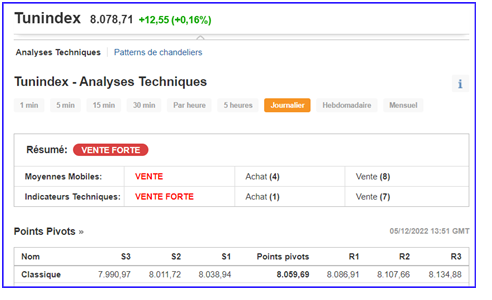Pour un Point Pivot, en données journalières, à 8059,69pts, on retiendra :