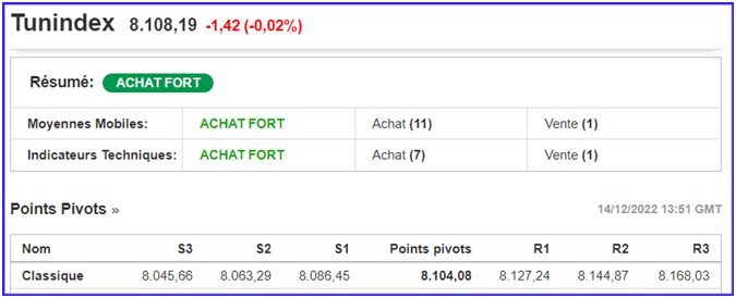 Enfin, soulignons que le CONSENSUS pour le TUNINDEX, affiche un signal « ACHAT FORT» en données journalières.