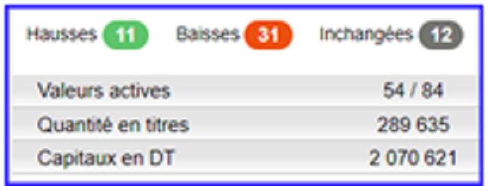  Sur 54 valeurs actives, 11 sont à la hausse, contre 31 à la baisse et 12 inchangées.