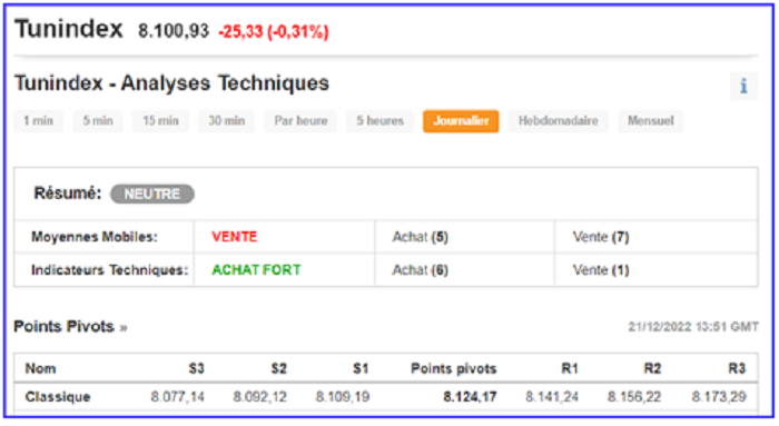 Enfin, soulignons que le CONSENSUSpour le TUNINDEX, affiche un signal « NEUTRE» en données journalières.