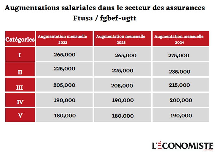 La Fédération générale des banques et des institutions financières relevant de l’UGTT a signé un accord avec la Fédération tunisienne des sociétés d’assurances. Cet accord porte sur des augmentations salariales au titre des années 2022, 2023 et 2024.