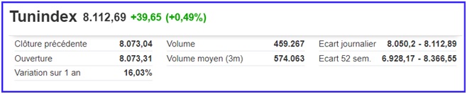 La BVMT a franchi le seuil à 8100 pts en rallye de fin d’année et se stabilise en-delà du seuil à 8110 pts, en continuant de gagner des points. le Tunindex consolide prudemment son trend haussier, pour clôturer la séance de jeudi dans le vert.