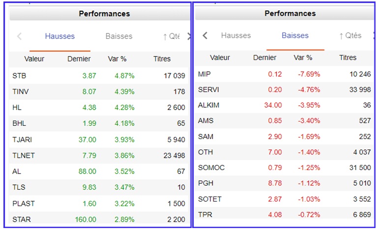 - Les TOP 10 des valeurs les plus actives on retrouve :