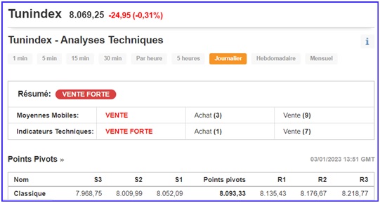 Pour le point pivot du jour, de 8093,33 pts, le TUNINDEX se positionne dans un canal large, limité par :