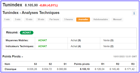 Pour le point pivot du jour, de 8100,10pts, le TUNINDEX se positionne dans un canal étriqué, limité par :