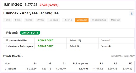 Pour le point pivot du jour, de 8320,96pts, le TUNINDEX se positionne dans un canal plus étriqué, limité par :