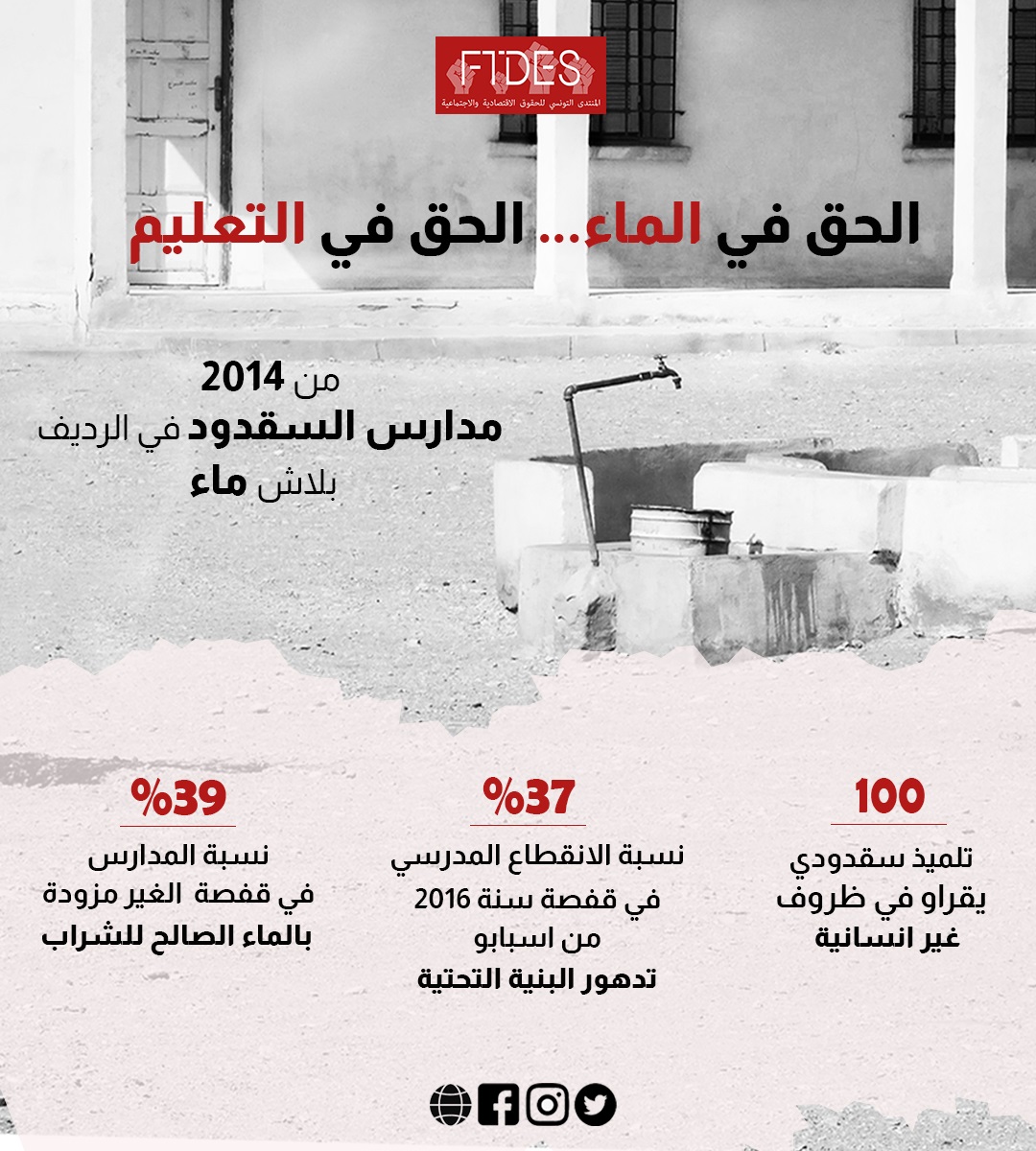 Selon le FTDES, l’absence d’eau dans les écoles a marqué les esprits. Ce qui a entraîné des conséquences quant à la qualité de l’enseignement. De ce fait, le FTDES appelle à la mise en place de mesures urgentes, dont notamment l’adoption du nouveau code des eaux.