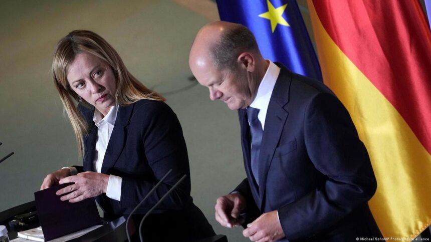 La guerre en Ukraine, l’immigration et le renforcement de la compétitivité de l’Europe ont été au cœur des pourparlers hier en début de soirée entre le chancelier Olaf Scholz et le Première ministre italienne Giorgia Meloni à Berlin, lors d’une rencontre très attendue en raison des divergences de vues des deux parties, mais aussi des critiques que Giorgia Meloni adresse à l’Allemagne.