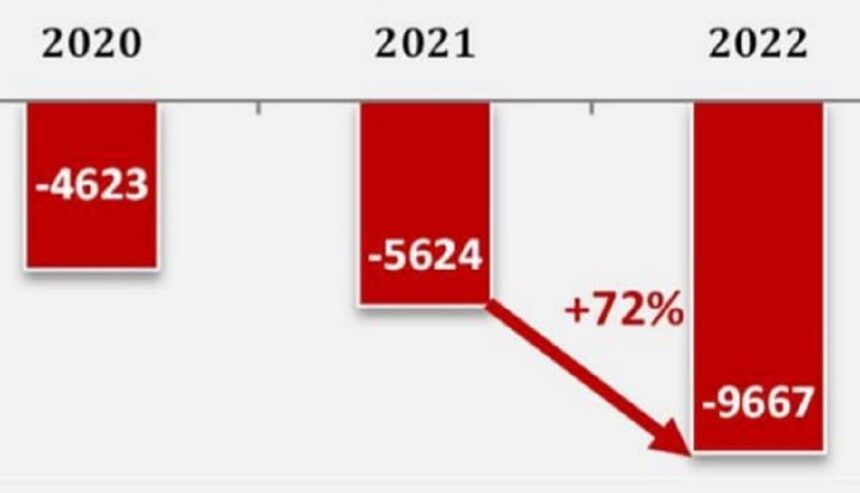 Selon les chiffres publiés par le ministère de l’Industrie, de l’Energie et des Mines, le déficit de la balance commerciale énergétique est passé de 5624 MDT en 2021 à 9667 MDT en 2022. Soit une augmentation de 72 % (en tenant compte de la redevance du gaz algérien exporté).