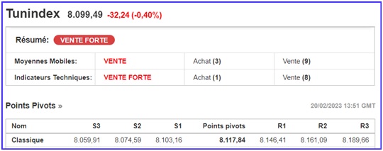 Le TUNINDEX clôture la séance en-deçà de son POINT PIVOT qui joue le rôle de RESISTANCE significative à la hausse, avec une fiabilité élevée au milieu de la semaine en cours.