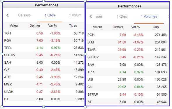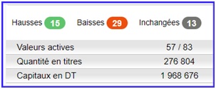 Sur 10 valeurs quantitativement actives, 1 est à la hausse, contre 7 à la baisse et 2 inchangées.