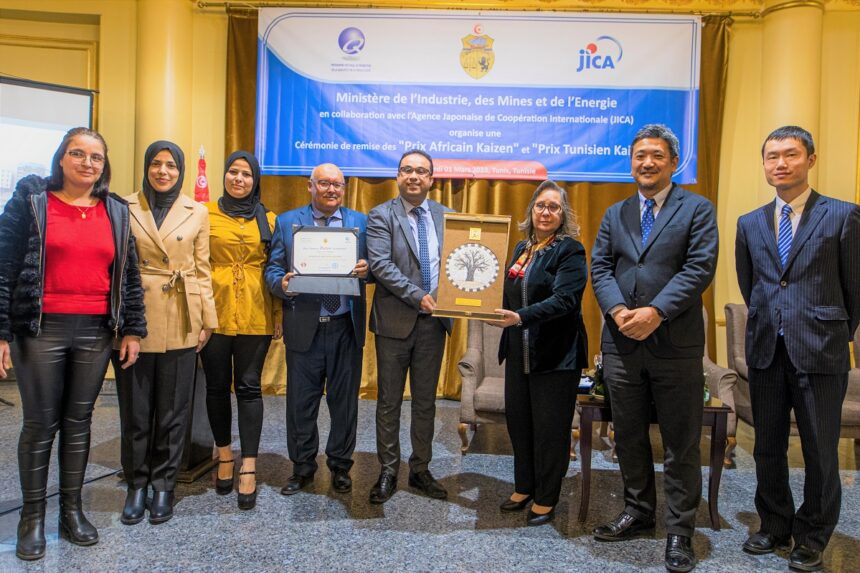 Le mercredi 1er mars 2023, le Ministère de l’Industrie, des Mines et de l’Énergie et l’Agence Japonaise de Coopération Internationale (JICA) ont organisé une cérémonie de remise des Prix Kaizen Africain et Prix TUNISIEN Kaizen relatifs à l’Année 2022, en présence de Neila Gongi la Ministre de l’industrie des mines et de l’énergie, de Shuhei Ueno le Représentant Résident du Bureau de la JICA en Tunisie, de M Tomohiro Ota, Premier Secrétaire à l’Ambassade du Japon en Tunisie, et de Zouheir Makhloufi le Directeur Général de l’Unité de Gestion du Programme National de Promotion de la Qualité et de la Productivité (UGPQP).