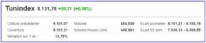 Le TUNINDEX a ouvert la semaine avec une hausse sensible de 0.38% en gagnant plus de 30 points d’indice pour clôturer le TUNINDEX à 8131.78 pts.