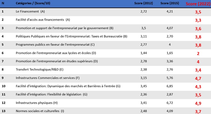 Notons que le rapport s’est appuyé sur une étude qui a inclus 2000 personnes autour de leur perception sur cinq axes en relation avec l’entrepreneuriat.